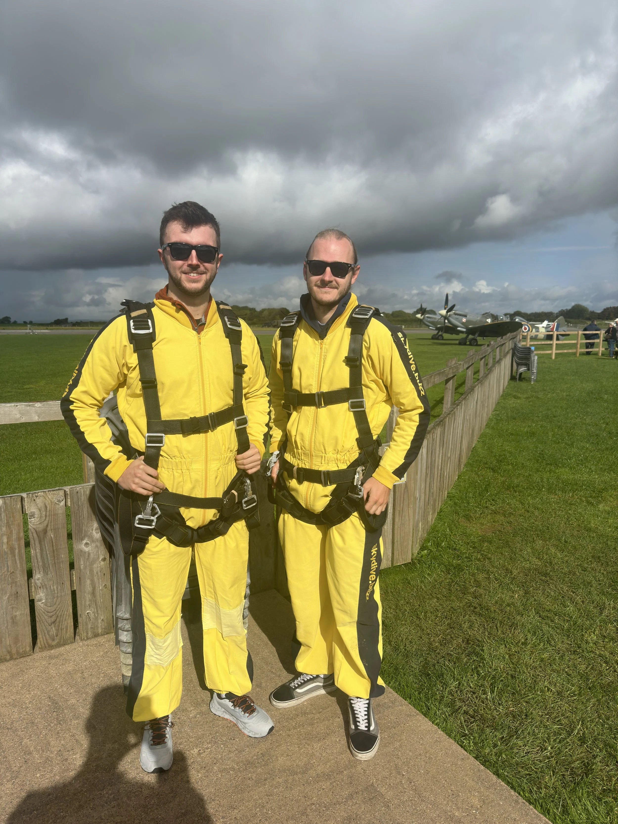 It’s only right that I start things off by drawing all attention to the picture of myself and a good friend in wonderful banana jumpsuits. Preparing to jump out of a plane from 15,000ft and all I can say is what an experience that is! I would highly recommend it to anyone.